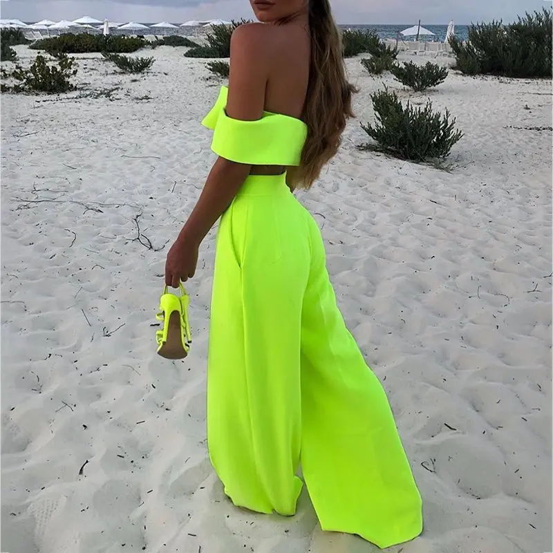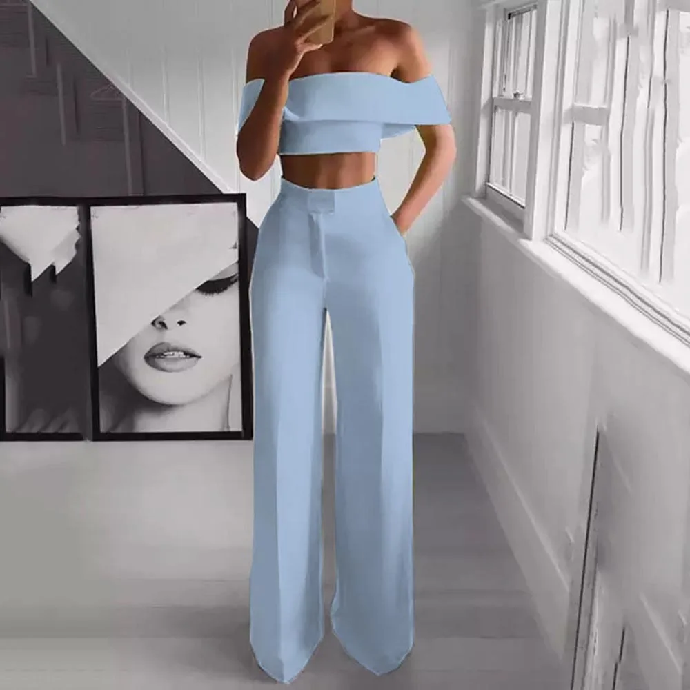 Summer Sexy Club Hip Hop Plus Size African Women Off Shoulder Shirt Long Pants Plain Falbala Female Two Piece Set Suit 5 Colors look the best product that related to